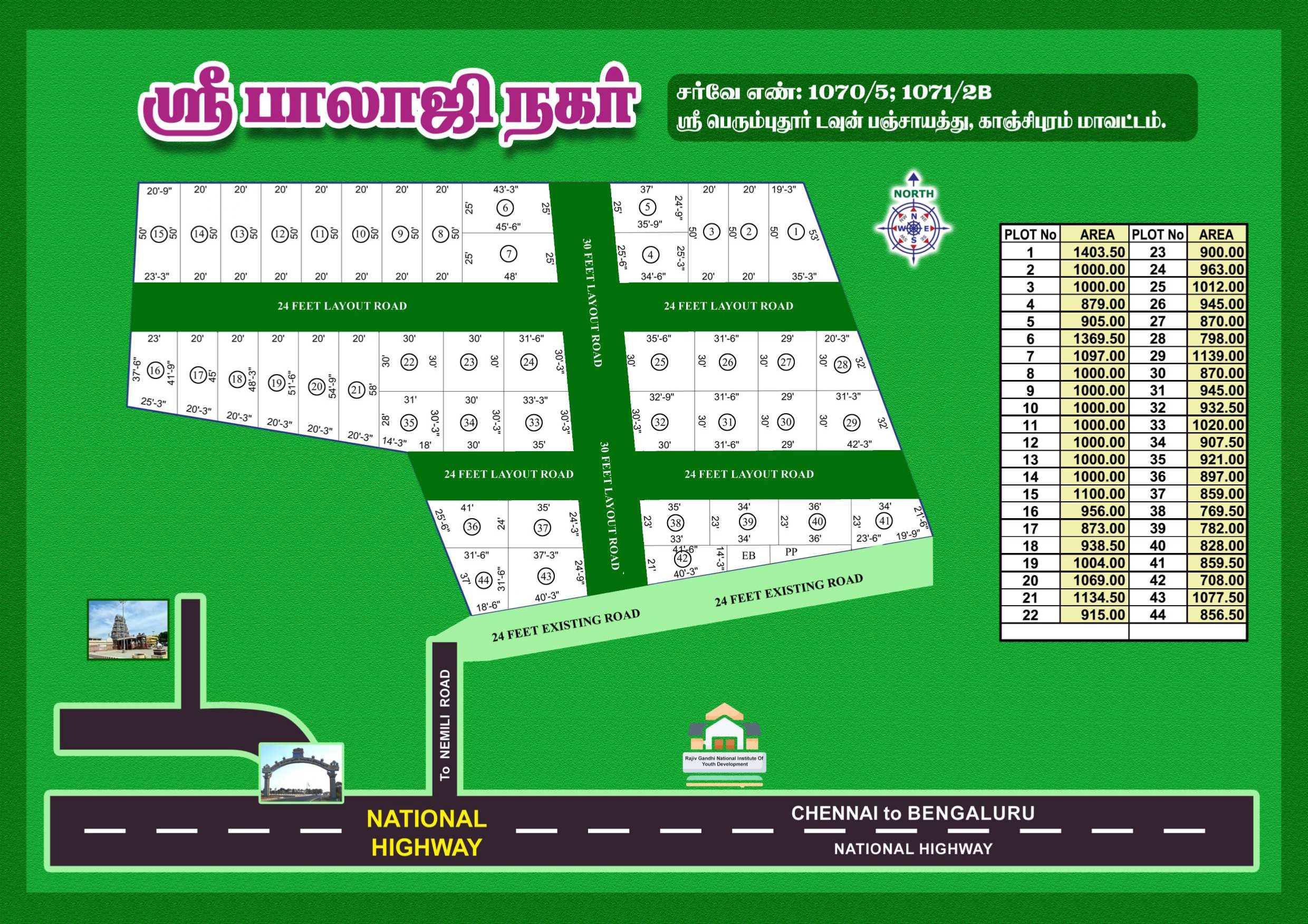 Close to the upcoming Thirumazhisai Satellite Township, this plotted project offers smart investment potential with growing infrastructure all around.